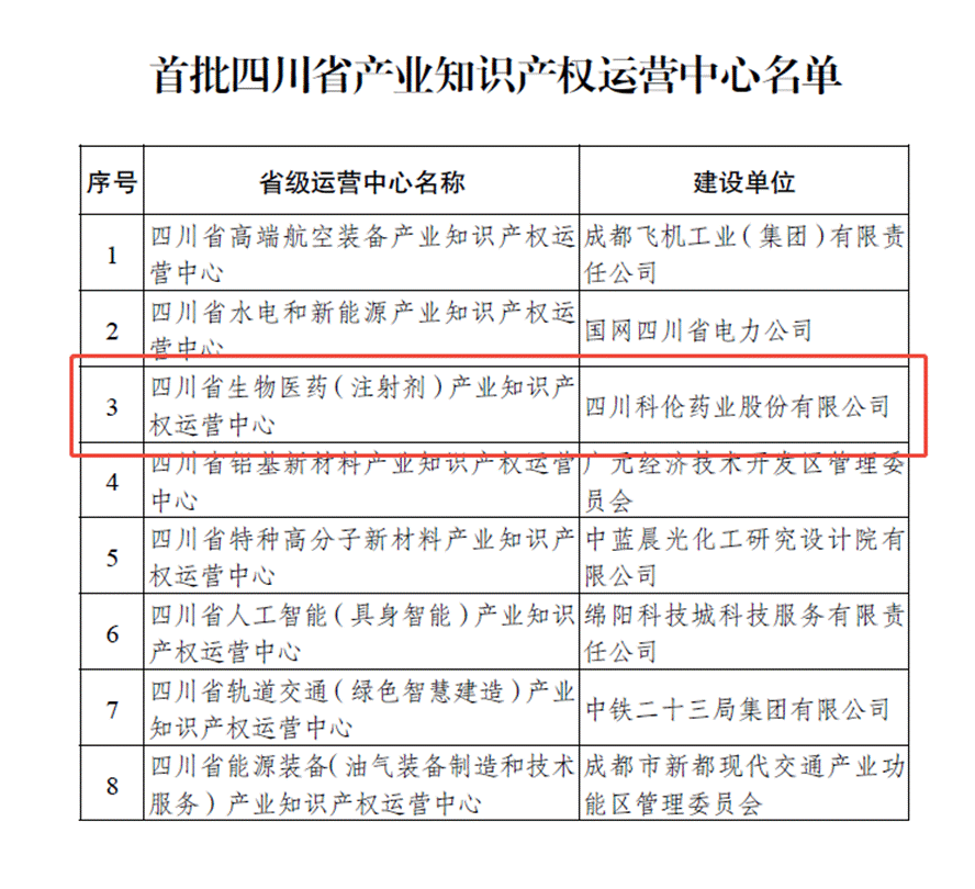 2025年12月15日,科伦药业新都基地牵头建设的“四川省生物医药(注射剂)产业知识产权运营中心”(以下简称中心)正式通过认定并启动运营。该基地是四川省首批8家产业知识产权运营中心中唯一的民营企业,成功打造了生物医药注射剂产业知识产权运营新标杆。